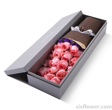 材 料:高檔禮盒裝鮮花:戴安娜粉玫瑰19枝,勿忘我適量(禮盒顏色以實(shí)際配送為準(zhǔn));
